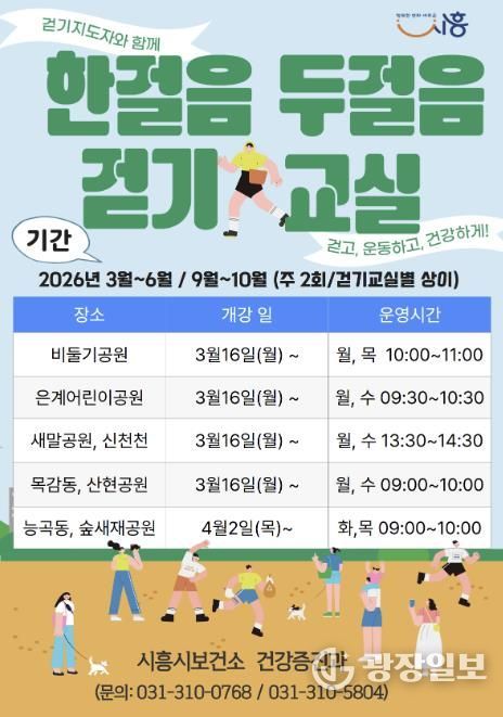 광장일보 주재영 기자 | 시흥시는 시민들의 일상 속 걷기 실천을 장려하고 건강생활 습관 형성을 돕기 위해 ‘한 걸음 두 걸음 걷기교실’을 운영한다.
