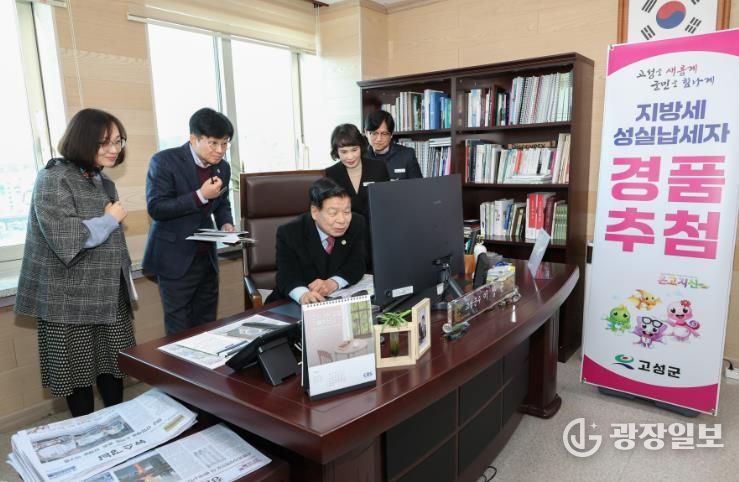 광장일보 주재영 기자 | 고성군은 3월 4일 군수 집무실에서 지방세를 성실히 납부해 군 재정 확충에 기여한 군민을 대상으로 ‘지방세 성실납세자 경품 추첨’ 행사를 개최했다고 밝혔다.