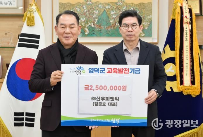 광장일보 주재영 기자 | 섬유제품 제조업체인 ㈜신우피앤씨의 김종호 대표가 지난 3일 영덕군을 찾아 지역교육 개선에 써달라며 교육 발전 기금으로 250만 원을 기탁했다.