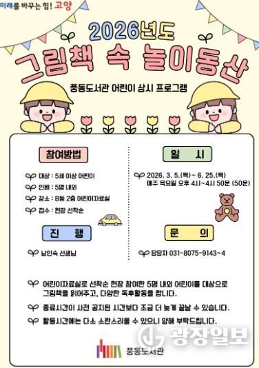 광장일보 주재영 기자 | 고양특례시 풍동도서관은 어린이 그림책 읽어주기 상시 프로그램 ‘그림책 속 놀이동산’을 운영한다고 5일 밝혔다.