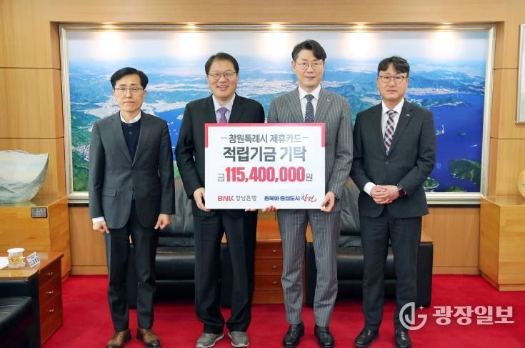 광장일보 주재영 기자 | 창원특례시는 3월 5일 시청 접견실에서 BNK경남은행 관계자들이 참석한 가운데 제휴카드 적립기금 전달식을 개최했다.