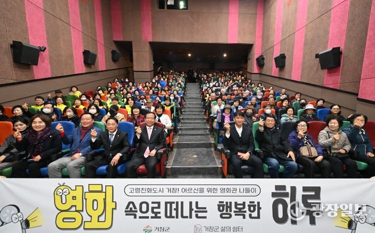 광장일보 주재영 기자 | 거창군은 지난 5일, 롯데시네마 거창에서 거창군 삶의쉼터(권한대행 김용종) 주관으로 관내 65세 이상 어르신 160여 여명이 참석한 가운데 ‘어르신을 위한 영화관 나들이 사업’ 첫 상영회를 성황리에 개최했다.
