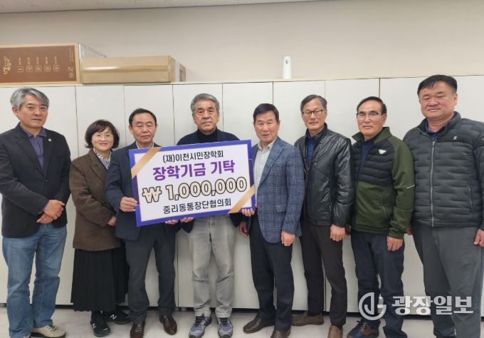 광장일보 주재영 기자 | 중리동 통장단협의회는 지난 3월 4일 지역 인재 육성을 위해 이천시민장학재단에 장학금 100만 원을 기탁했다.