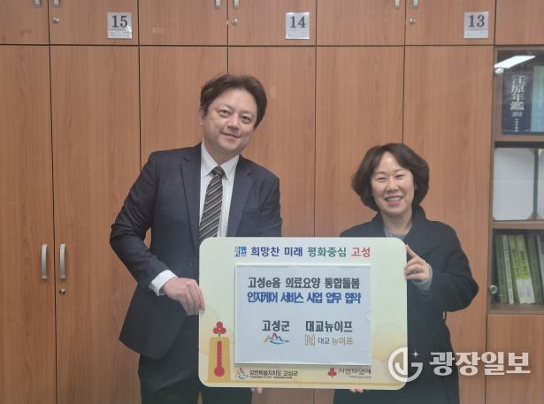광장일보 이현나 기자 | 평화 경제 거점 도시 강원 고성군은 3월 5일, 대교뉴이프(대표 김경호)와 ‘고성e음 인지케어 서비스’ 추진을 위한 업무 협약을 체결했다고 밝혔다.