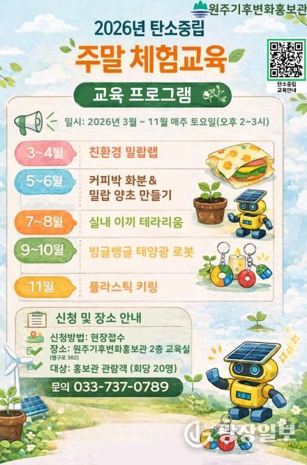 광장일보 이현나 기자 | 원주기후변화홍보관은 시민들이 생활 속에서 탄소중립을 쉽고 재미있게 이해하고 실천할 수 있도록 ‘탄소중립 주말 체험교육 프로그램’을 운영한다.