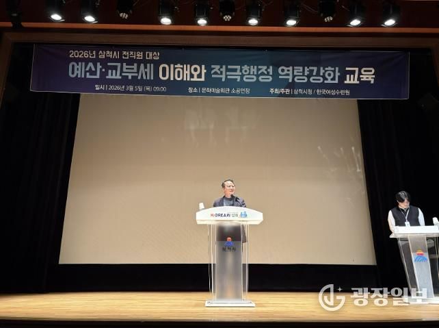 광장일보 이현나 기자 | 삼척시는 3월 5일 문화예술회관 소공연장에서 전 직원을 대상으로 ‘예산·교부세 이해와 적극행정 역량강화 교육’을 실시했다. 이번 교육은 지방재정에 대한 이해를 높이고 공직자의 적극행정 역량을 강화해 능동적으로 문제를 해결하는 적극행정 공직문화를 확산하기 위해 마련됐다.