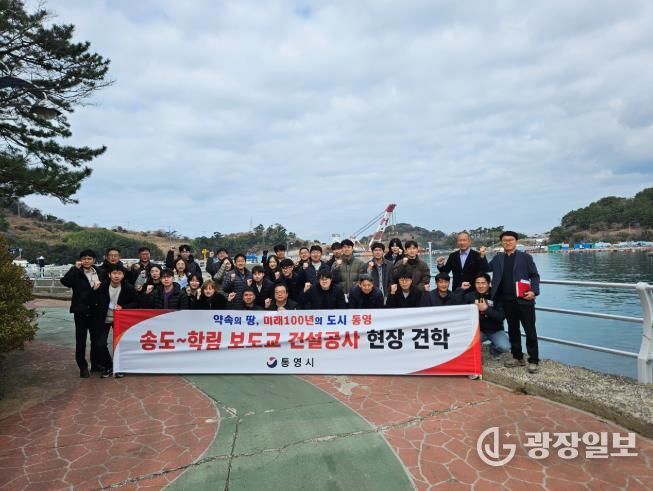 광장일보 주재영 기자 | 통영시는 지난 5일 산양읍 송도와 학림도를 잇는‘송도~학림 보도교 건설공사’현장에서 토목직 공무원들 40여 명을 대상으로 현장 견학 및 기술 연찬을 실시했다.