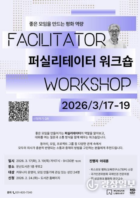 광장일보 주재영 기자 | 파주시 문산도서관은 지역 공동체 형성을 촉진하기 위해 3월 17일부터 19일까지 ‘좋은 모임을 만드는 평화 역량’교육을 운영한다.