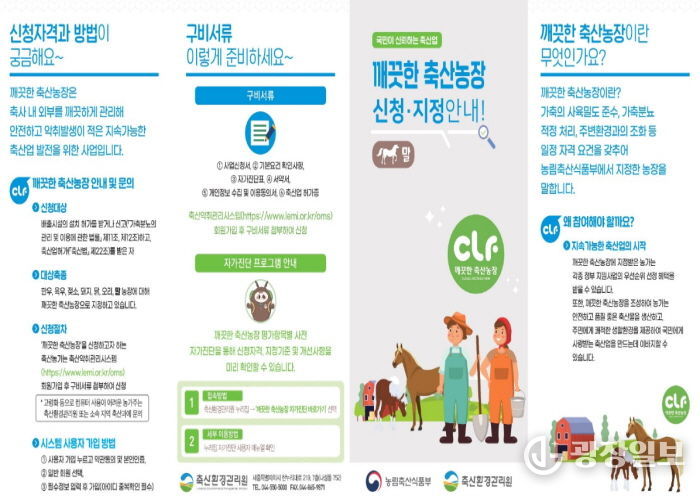 ‘깨끗한 축산농장’은 농림축산식품부 주관 인증 제도로, 축사 내·외부 위생 관리, 가축분뇨 적정 처리, 악취 저감 등 엄격한 기준을 충족한 농가에 부여된다. 이 제도는 농가의 자발적 환경 조성을 유도해 지속 가능한 축산업 기반을 마련하고 시민 생활환경을 개선하는 데 목적이 있다.