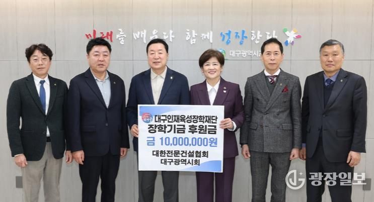 광장일보 주재영 기자 | 대구시교육청은 3월 5일 대한전문건설협회 대구광역시회가 장학금 1천만원을 대구인재육성장학재단에 기탁했다고 밝혔다.