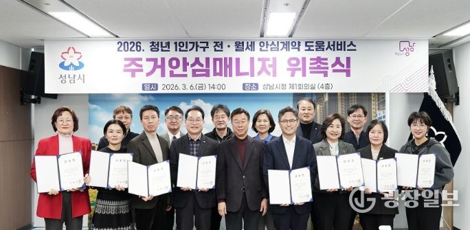 광장일보 주재영 기자 | 성남시는 전월세 계약 경험이 부족한 1인 가구 청년층을 돕기 위해 현직 공인중개사 15명을 ‘주거 안심 매니저’로 위촉했다고 6일 밝혔다.