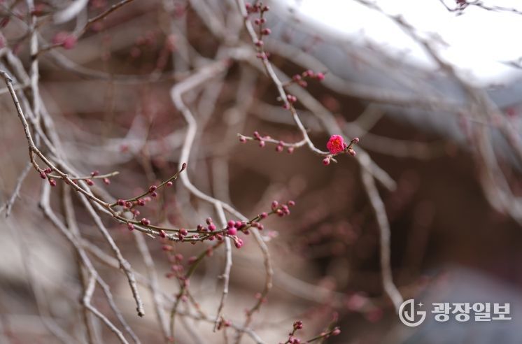 광장일보 주재영 기자 | 대한불교조계종 제19교구 본사 지리산대화엄사(주지 우석 스님)는 국가유산 천연기념물 '구례 화엄사 화엄매' 홍매화가 2026년 3월 6일 오후 2시 무렵 첫 꽃망울을 터뜨리며 본격적인 개화를 시작했다고 밝혔다.