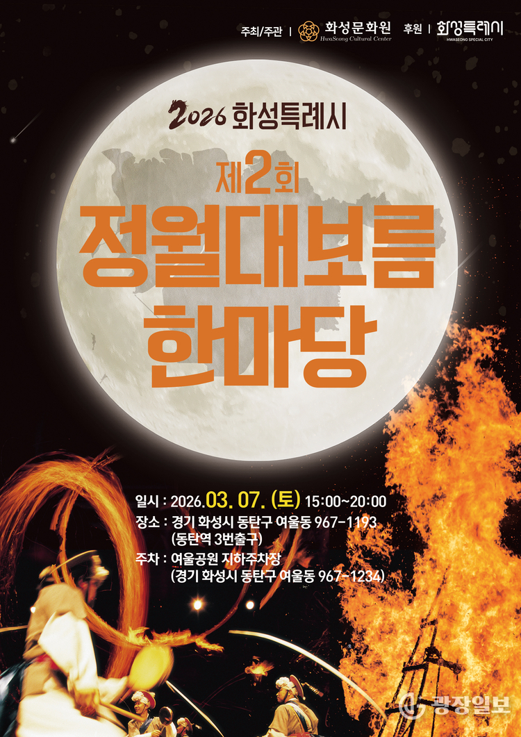 화성특례시=나병석 기자 | 화성문화원이 주최·주관하고 화성특례시가 후원하는 ‘2026년 화성특례시 제2회 정월대보름 한마당’이 3월 7일 오후 3시부터 8시까지 동탄역 3번 출구 앞 광장에서 열린다.
