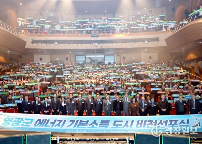 광장일보 주재영 기자 | 영광군은 지난 3월 6일 오후 2시, 영광문화예술의전당 대공연장에서 '영광군 에너지 기본소득 도시 비전선포식'을 성황리에 개최했다.