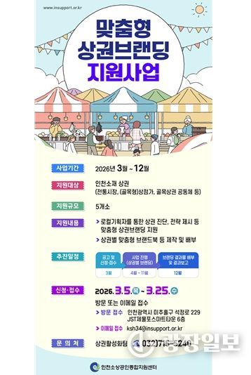 광장일보 주재영 기자 | 인천광역시는 지역 상권의 고유한 특성과 경쟁력을 체계적으로 진단하고, 상권별 맞춤형 전략을 수립하기 위한'맞춤형 상권브랜딩 지원사업'을 올해 처음으로 추진한다고 밝혔다.