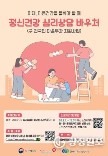 이 사업은 심리상담이 필요하다고 인정되는 시민을 대상으로 맞춤형 마음 돌봄 서비스를 제공하기 위해 마련됐다.