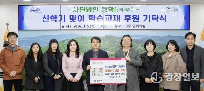 광장일보 주재영 기자 | 부산 금정구는 지난 5일 사단법인 동학으로부터 관내 취약계층 청소년을 위한 “학습 교재 57권(100만원 상당)” 이웃돕기 성품을 기탁받았다고 밝혔다.