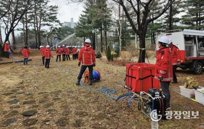 광장일보 박균현 기자 | 수원시 영통구는 지난 6일 영통구청 인근 근린공원에서 산불 발생 상황을 가정한 산불대비 자체 모의훈련을 실시했다.