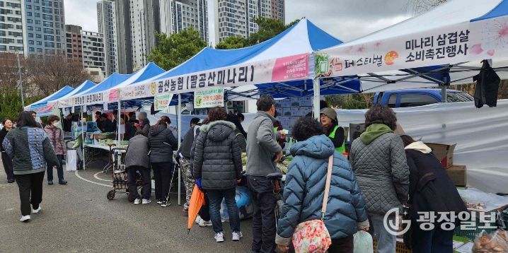 장터는 옛 두류정수장 부지에서 오전 10시부터 오후 5시까지 진행된다. 2월 중순부터 3월 말까지 제철을 맞은 지역산 미나리와 삼겹살을 시중가보다 10% 이상 저렴한 가격에 선보인다.