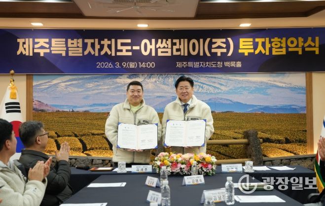 광장일보 나학천 기자 | 제주특별자치도는 9일 도청 백록홀에서 탄소나노튜브(CNT) 기반 첨단 소재 기업 어썸레이㈜(대표 김세훈)와 투자 및 지역경제 활성화를 위한 투자협약(MOU)을 체결했다.