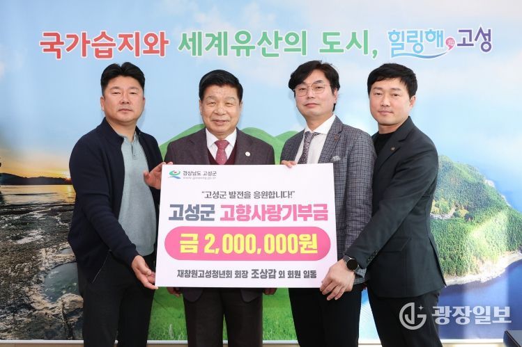 광장일보 주재영 기자 | 고성군은 재창원고성청년회 회원 일동(회장 조상갑)이 고향 고성을 응원하는 마음을 담아 고향사랑기부금 200만 원을 기탁했다고 밝혔다.