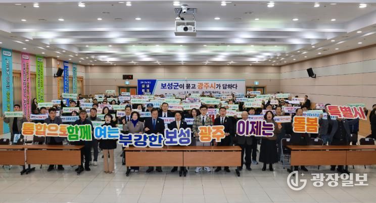 광장일보 주재영 기자 | 보성군은 지난 9일 보성군청 대회의실에서 7월 전남·광주 행정통합 출범을 앞두고 양 지역의 연계 발전 방향을 모색하는 ‘광주·전남 통합 보성군 상생토크’를 성황리에 개최했다고 밝혔다.