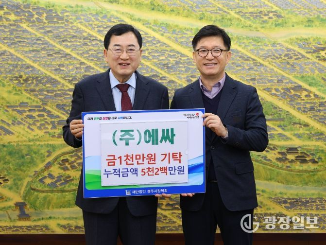 주낙영 경주시장(경주시장학회 이사장)은 “어려운 경제 여건 속에서도 지역 학생들을 위해 따뜻한 나눔을 실천해 준 ㈜에싸에 감사드린다”며 “기탁된 장학금은 지역의 인재들이 꿈을 키워갈 수 있도록 소중하게 사용하겠다”고 밝혔다.