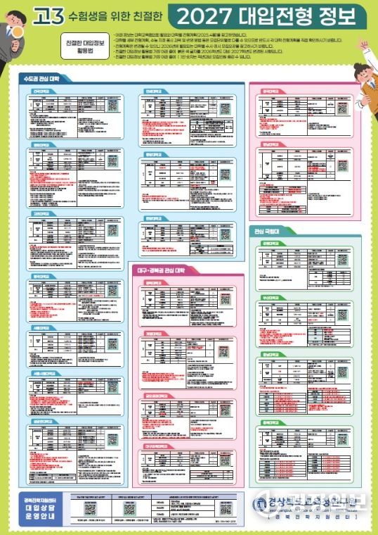 또한 ‘2027 대학 진학 정보’ 동영상은 경상북도교육청 공식 유튜브 채널 ‘맛쿨멋쿨TV’에 탑재해 학생과 학부모가 언제든지 시청할 수 있도록 했다.
