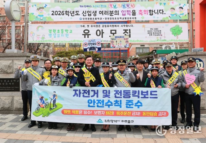 광장일보 주재영 기자 | 인천 미추홀구는 11일 오전 경원초등학교에서 신학기 초등학생들의 안전한 등굣길 조성을 위한 ‘신학기 어린이 교통안전 캠페인’을 실시했다.
