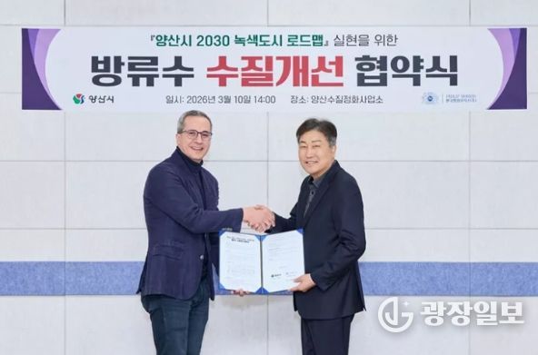 광장일보 주재영 기자 | 양산시는 3월10일 한국필립모리스(양산공장)와 양산 공공하수처리장 연계 처리수 방류수 수질개선을 위한 자율협약을 양산하수처리장에서 체결했다.