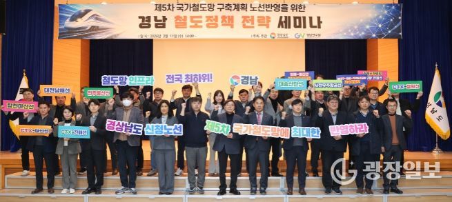 광장일보 주재영 기자 | 경상남도는 11일 경남도청 대회의실에서 ‘제5차 국가철도망 구축계획 노선 반영을 위한 경남 철도정책 전략 세미나’를 개최했다고 밝혔다.