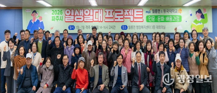 광장일보 주재영 기자 | 파주시 월롱면은 동국대학교와 함께하는 ‘일생일대’프로젝트가 지난 10일 많은 수강생이 참여한 가운데 성황리에 개강했다.