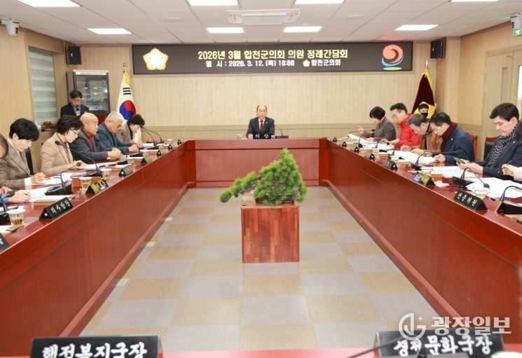 광장일보 주재영 기자 | 합천군의회는 12일 합천군의회 간담회장에서 2026년 3월 합천군의회 의원 정례간담회를 개최했다고 전했다.