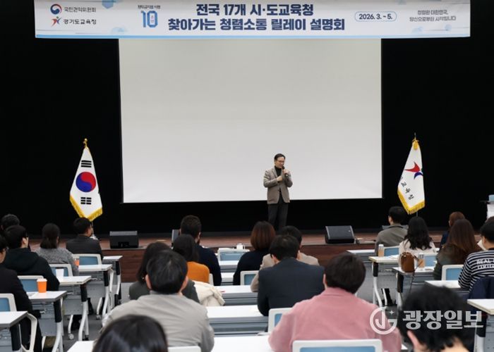 광장일보 박균현 기자 | 경기도교육청이 청탁금지법 시행 10주년을 맞아 국민권익위원회와 함께하는 ‘찾아가는 청렴소통 릴레이 설명회’를 12일 개최했다.