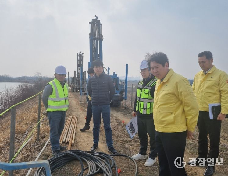 시는 12일 교동 5지구 급경사지와 백석저수지 재해복구사업 현장에서 건설안전국장 주재로 재난안전과장 등 관련 부서 관계자들이 참석한 가운데 현장 합동 현장 점검을 실시했다.