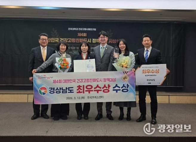 광장일보 주재영 기자 | 경상남도는 건국대학교 건강고령사회연구원이 주최하고 보건복지부가 후원하는 ‘제4회 대한민국 건강고령친화도시 정책대상’에서 유일하게 광역자치단체 최우수상을 수상했다고 밝혔다.
