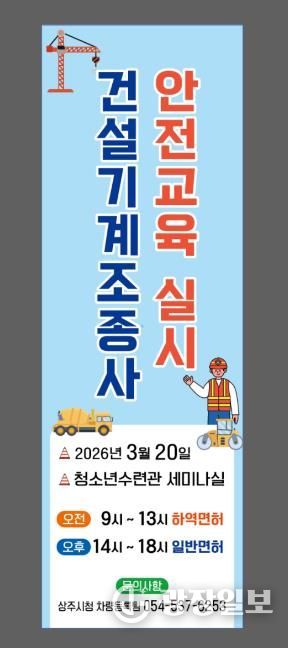 광장일보 주재영 기자 | 상주시는 오는 20일 청소년수련관 세미나실에서 2026년 건설기계조종사 안전교육을 실시한다.
