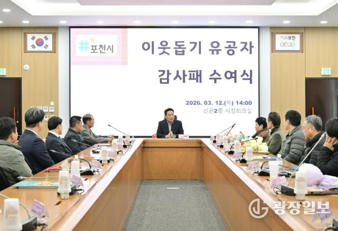 광장일보 주재영 기자 | 포천시는 지난 12일 시정회의실에서 '이웃돕기 유공자 감사패 수여식'을 개최하고, 지역사회 나눔 문화 확산에 기여한 후원자들에게 감사패를 전달했다.