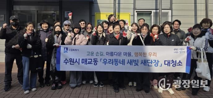 광장일보 박균현 기자 | 수원시 팔달구 매교동은 지난 12일 주민들과 함께 새봄을 맞아 쾌적한 도시환경 조성을 위해 가로변 및 보행로 대청소와 화단 초화 식재 활동을 실시했다.