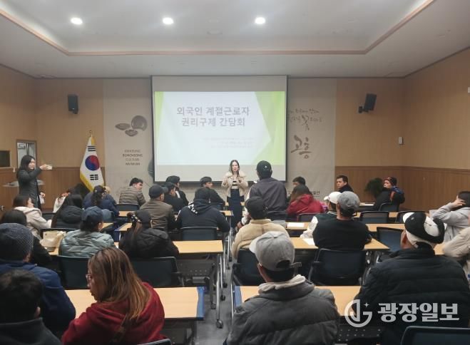 광장일보 주재영 기자 | 고흥군은 지난 12일 고흥분청문화박물관 강당에서 관내 외국인 계절근로자의 인권 보호와 실질적인 권리구제를 위해 ‘외국인 계절근로자 권리구제 간담회’를 개최했다고 밝혔다.