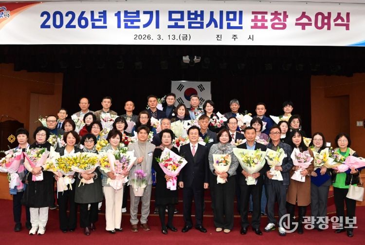 광장일보 주재영 기자 | 진주시는 13일 시청 시민홀에서 지역사회 발전에 기여하고 자발적인 봉사와 나눔을 실천한 시민 90명을 대상으로 ‘2026년 1분기 모범시민 표창 수여식’을 개최했다.