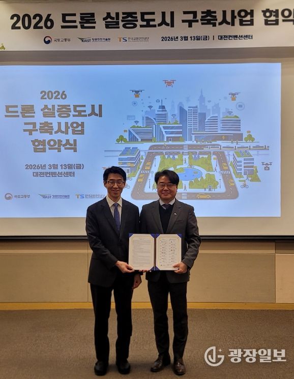 밀양시는 국토교통부가 주관하는 ‘2026년 드론 실증도시 구축사업’에 최종 선정돼 3월 13일 대전컨벤션센터에서 전국 18개 지자체와 함께 ‘드론 실증도시 구축사업 공동협력 협약’을 체결했다.