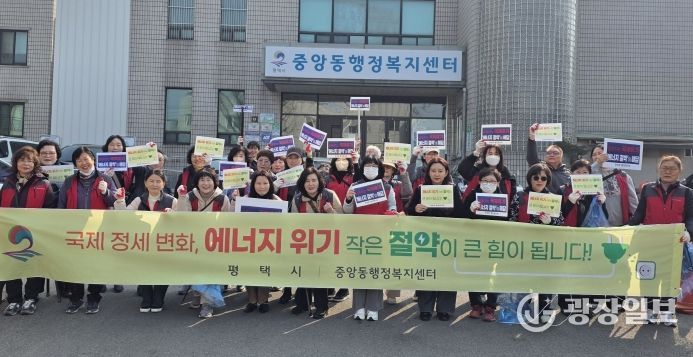 광장일보 박균현 기자 | 평택시 중앙동 통장협의회는 지난 12일 중앙동 일원에서 최근 치솟는 유가와 에너지 비용 상승에 대응하고, 주민들의 자발적인 에너지 절약 실천 문화를 확산하기 위해 환경정화 활동과 연계하여 ‘에너지 절약 실천 가두 캠페인’을 실시했다.
