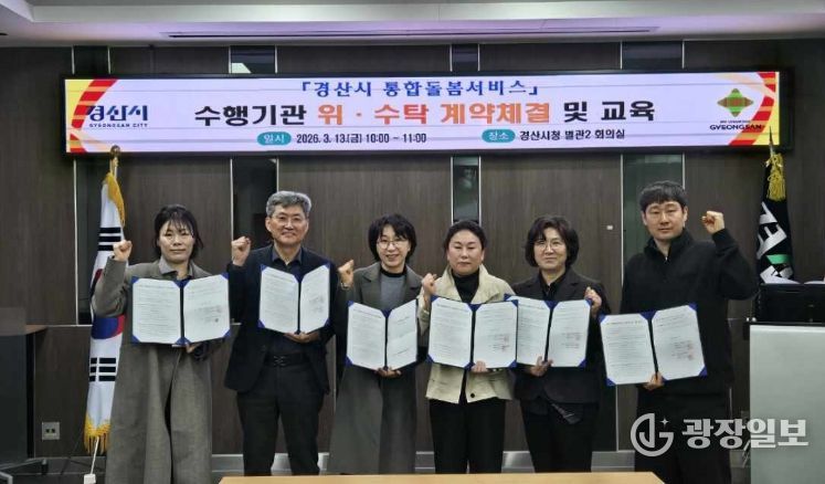 광장일보 주재영 기자 | 경산시는 13일 지역 내 돌봄이 필요한 어르신들이 살던 곳에서 안정적으로 생활할 수 있도록 지원하기 위해 통합 돌봄 서비스 수행기관(5개 분야 6개소)과 위·수탁 계약을 체결하고 사업 운영 교육을 실시했다고 밝혔다.