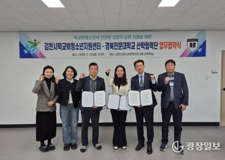 광장일보 주재영 기자 | 김천시학교밖청소년지원센터는 13일 경북전문대학교 산학협력단과 ‘학교 밖 청소년의 건강한 성장과 자립 지원’을 위한 업무협약(MOU)을 체결했다.