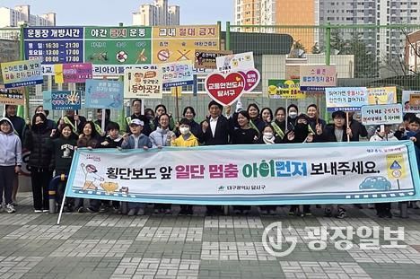 이날 행사에는 달서구청, 송일초등학교 교직원과 학생, 달서경찰서, 달서녹색어머니회 등 유관기관 관계자들이 함께 참여해 어린이 교통안전 문화 확산에 힘을 보탰다.