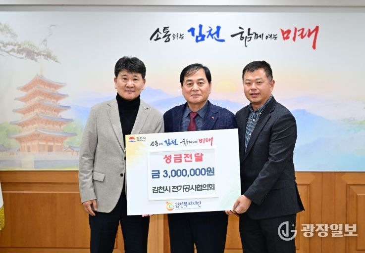시 관계자는 “지역사회 복지를 위해 따뜻한 나눔을 실천해 주신 김천시 전기공사협의회에 감사드린다. 기탁해 주신 성금은 도움이 필요한 이웃을 위해 소중히 사용하겠다.”라고 말했다.