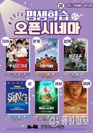 광장일보 주재영 기자 | 광명시 평생학습원은 시민들이 영화로 삶을 성찰하고 배움의 가치를 나눌 수 있도록 2026년 ‘평생학습 오픈시네마’를 운영한다고 17일 밝혔다.