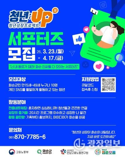 광장일보 주재영 기자 | 화순군은 17일 지역 청년들의 취업 준비와 사회 진입을 지원하기 위한 청년성장프로젝트 ‘청춘오름’을 4월부터 본격 운영한다고 밝혔다.