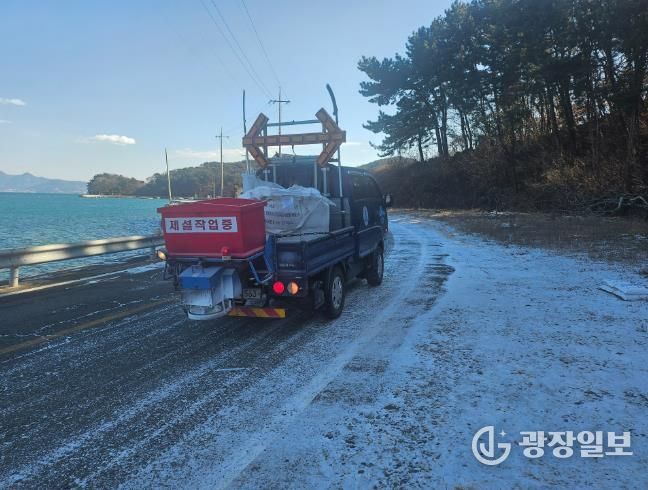남해군은 이 기간 동안 기상예보에 따라 비상근무체계를 가동하고, 도로팀 17명(공무원 5명, 도로보수원 12명)을 투입해 결빙 예방 및 제설 작업을 실시했다.